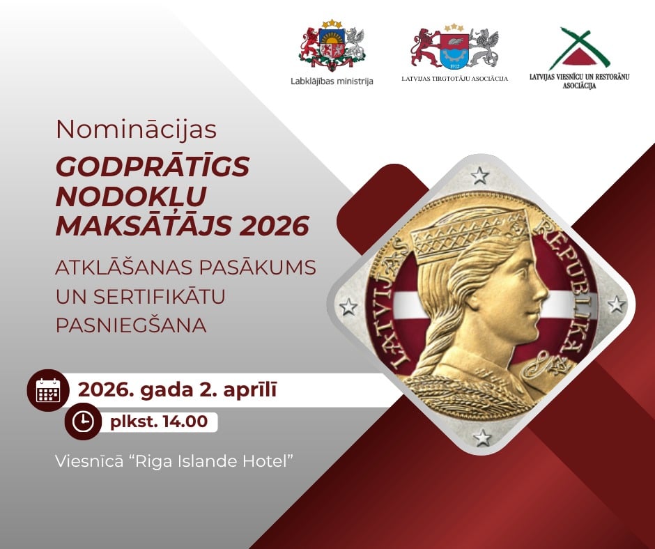 Aicinām jūs pieteikties nominācijai Godprātīgs nodokļu maksātājs 2026, kuras mērķis